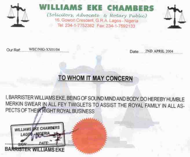 The Foreign Office staff, ably led by Lady Agatha Bristol, CBE, require all scammers to sign Oaths of Loyalty.