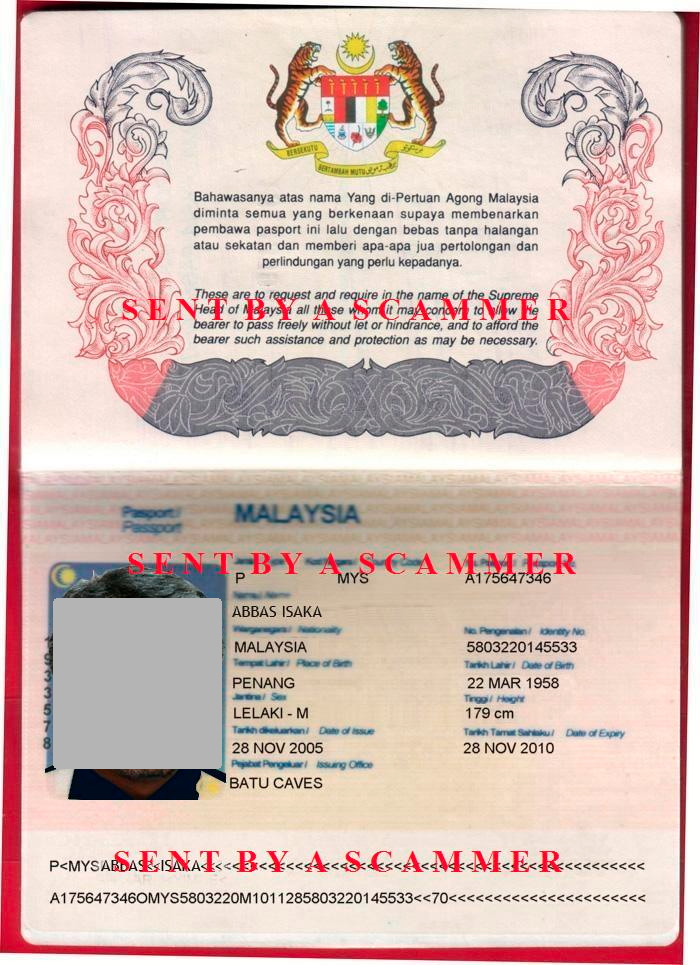 I don't remember you saying anything about a Certificate of Legality, but trust me, that's not important right now. What I want to know is why someone else from Malaysia should have written to me with an offer of huge amounts of money.